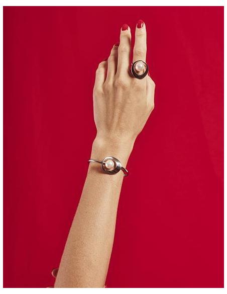 Un brazalete como el de colección Petra tiene todo lo que una joya todoterreno tiene que tener: material resistente como el acero, diseño moderno y en tendencia y, por supuesto, el toque de la perla blanca orgánica de 12mm más famosa del mediterráneo.